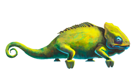 イラスト カメレオン カメレオンの色 位置を定められた 背景 白 Flavovirent